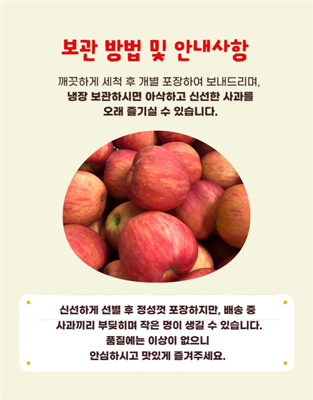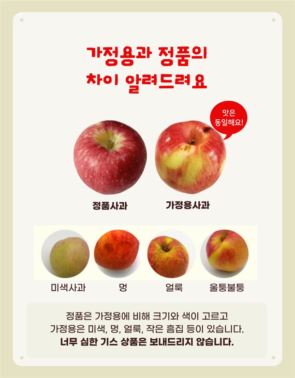 가정용 사과는 미색, 멍, 얼룩이 있지만