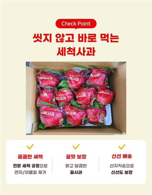 이 상품은 개별포장 된 세척사과입니다.